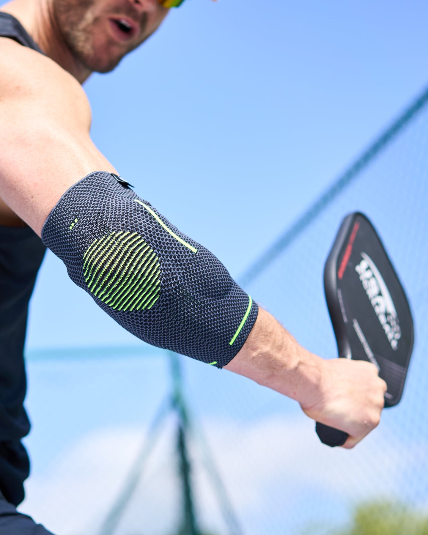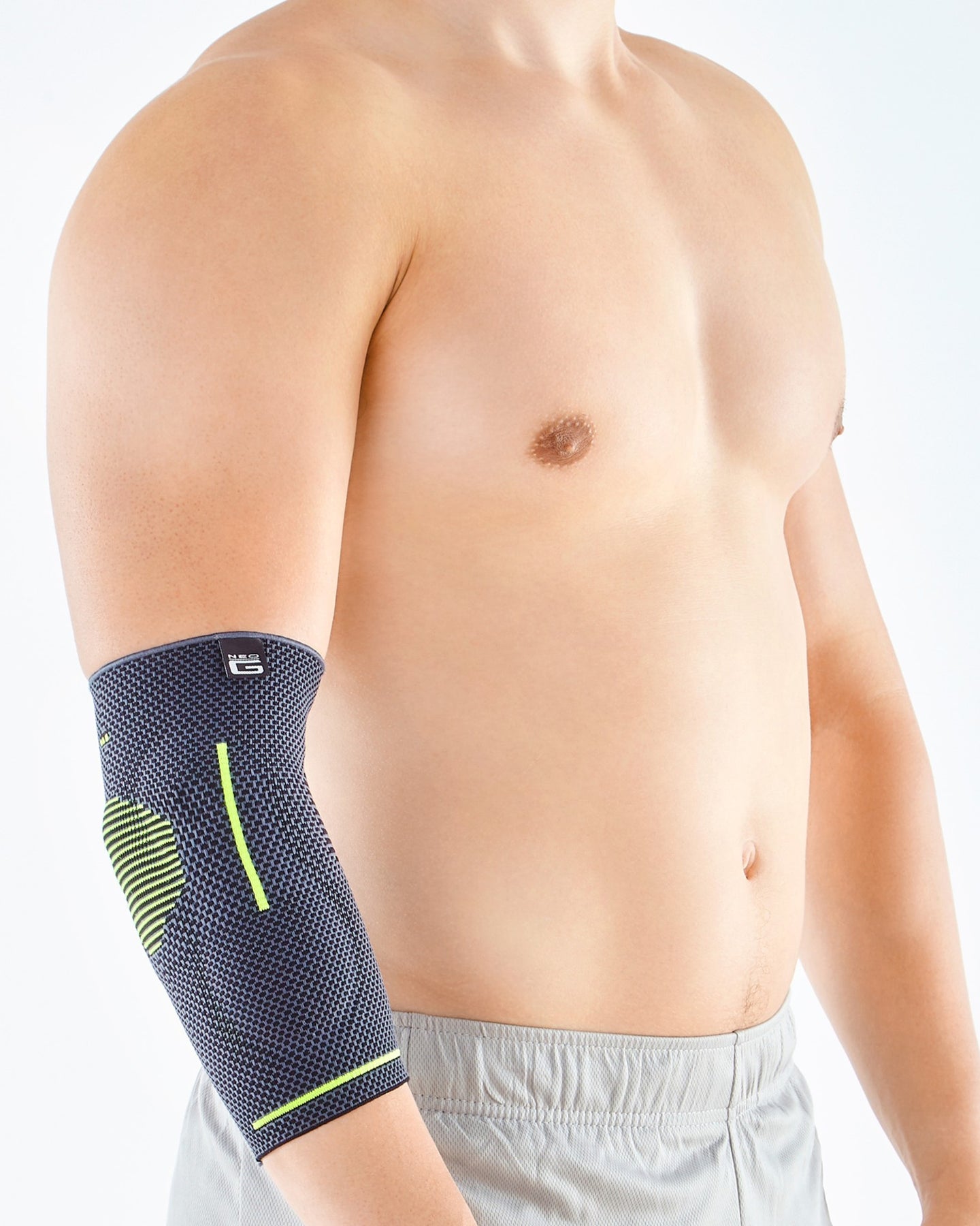 The Neo G Active Plus Elbow Support is designed to provide targeted support and protection for weak, injured, or arthritic elbows. Premium silicone joint cushions on either side of the elbow help absorb impact and vibration, supporting and protecting the joint during movement.
